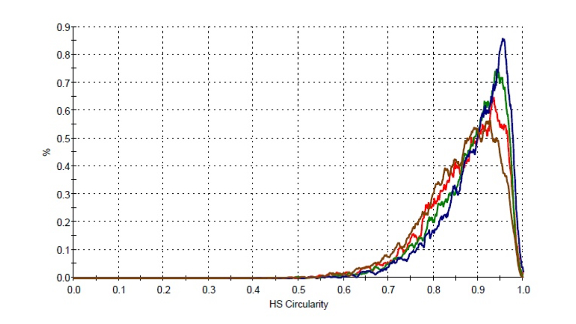 画像解析結果2:輝度値による抽出後の円形度(Dn50)