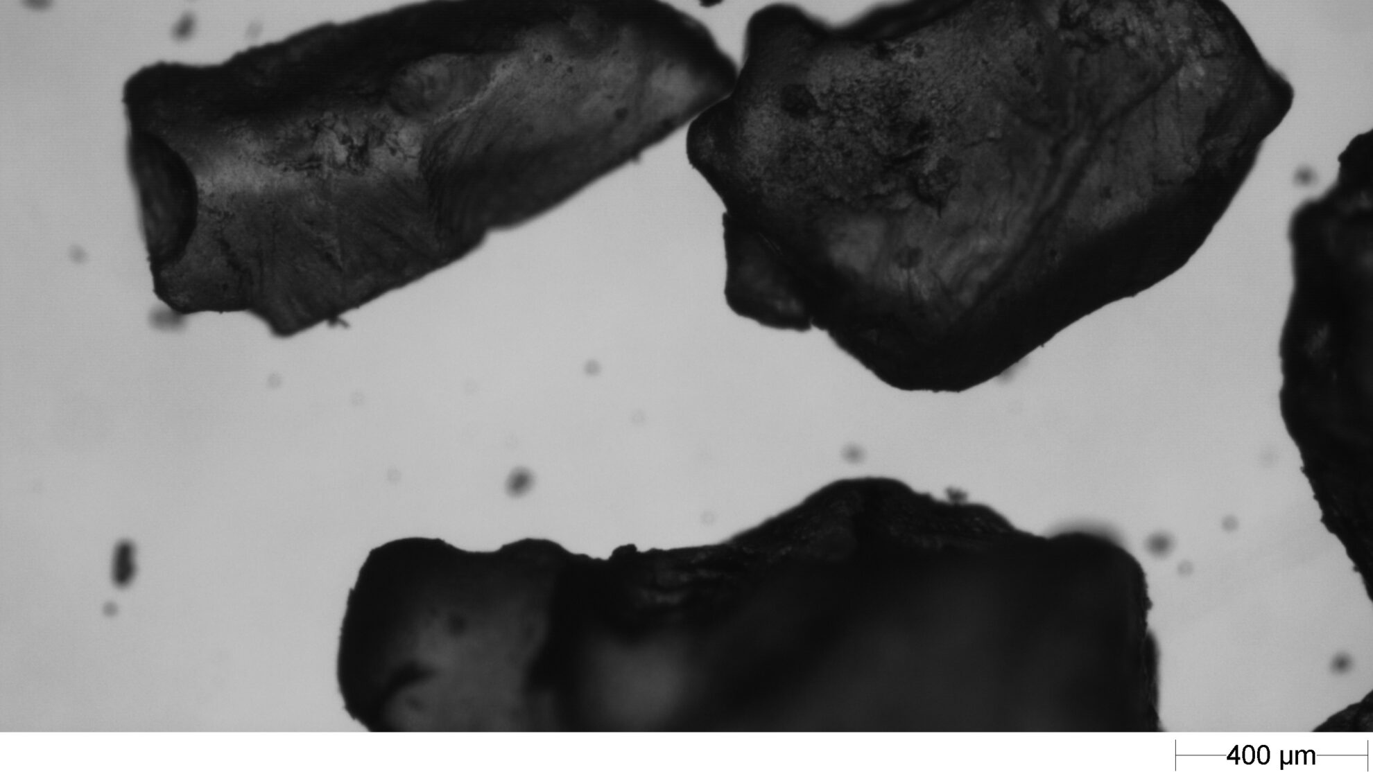 ガラスビーズではない微粒子群があり、被覆されなかったアルミナ粉とPVAの凝集体が存在することが確認されました。