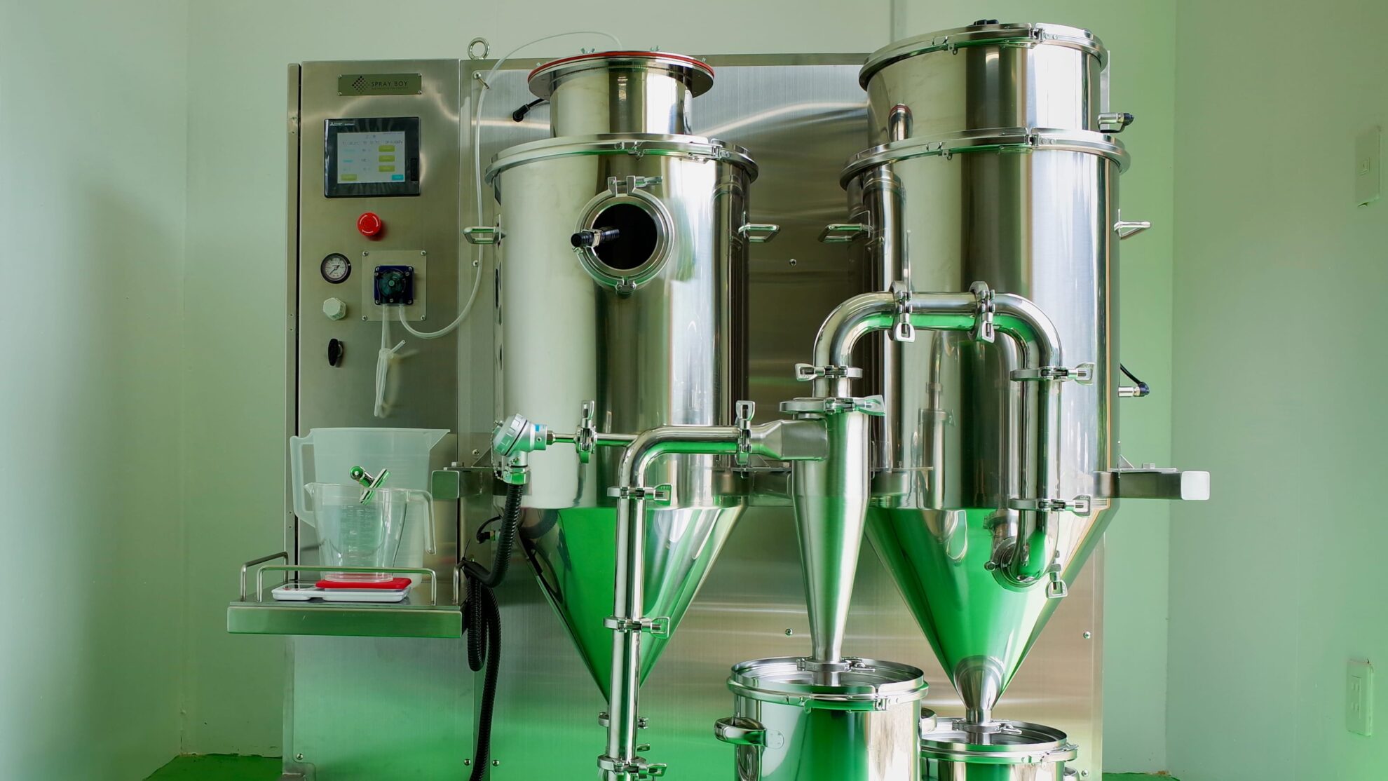 プロバイオティクス等における生菌体の粉体化は、一般的な医薬品や食品と比べて高いプロセス技術が要求されます。粉体化プロセス時には、菌体を死滅させずに、生菌率を高く維持した上で、高効率で安定した生産を行う必要があります。生菌体の粉体化は、主にスプレードライヤーによる噴霧乾燥およびフリーズドライヤーを用いた凍結乾燥品を粉砕加工する製造法が広く利用されています。当社は、スプレードライヤーによる生菌体の噴霧乾燥工程において多数の実績があります。蓄積された経験をもとに、要求品質を満たした最適なプロセス設計を行います。スプレードライヤープロセスの諸条件を最適化し、粉体品質をコントロールする事が可能です(プロバイオティクス – 乳酸菌・ビフィズス菌の噴霧乾燥プロセス)。また、当社が新たに開発した凍結造粒(フリーズグラニュレーション)という粉体製造プロセスがあります。フリーズグラニュレーション法は、液体を低温環境下に噴霧することによって瞬間的に凍結させ、その凍結体を凍結乾燥工程で昇華させることにより、球形で流動性に優れた造粒体を製造することが可能な製造プロセスです。2019年に、当社が世界初の量産型フリーズグラニュレーターとして開発に成功しました(特許)。