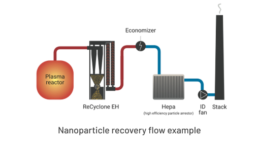 ACS product lineup includes ReCyclone EH with electrostatic recirculation. By directly capturing particles through electrostatic recirculation, particle degradation and aggregation can be avoided. ReCyclone EH has a proven track record of achieving a collection efficiency of over 95% for ZnO nanoparticles with a median diameter of approximately 1 μm and over 90% for silicon nanoparticles with a median diameter of 20 to 30 nm (Reference: NASA article, page 31).