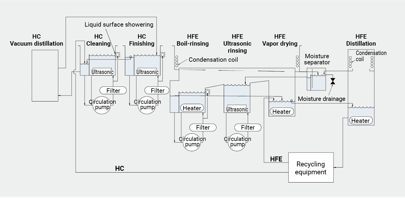 Our COSOL uses a hydrocarbon solvent for cleanning and dissolving contaminants, followed by liquid substitution through a fluorinated solvent. Using two different solvents, the system delivers powerful cleaning, fast drying, and a perfect finish regardless of the type of contaminants.