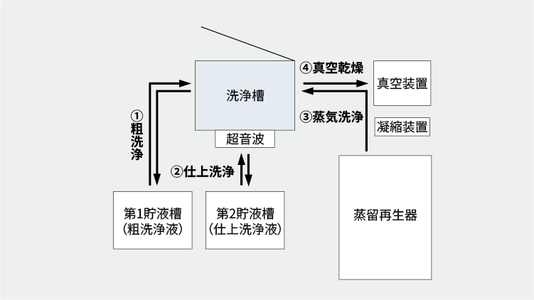 減圧超音波洗浄・浸漬2回洗浄・蒸気洗浄